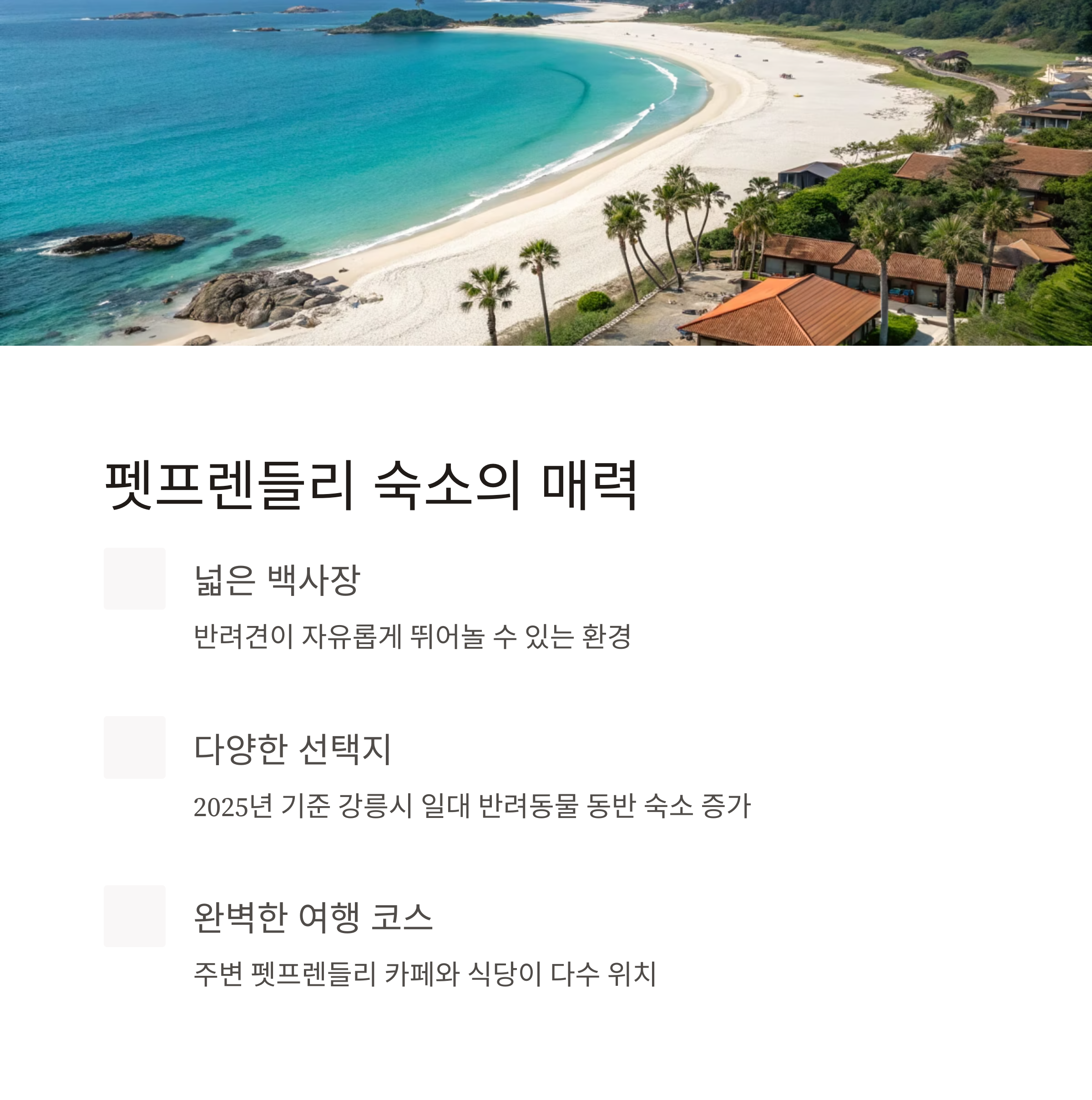 실제로 2025년 기준 강릉시 일대에서는 반려동물 동반 가능 숙소가 꾸준히 증가해