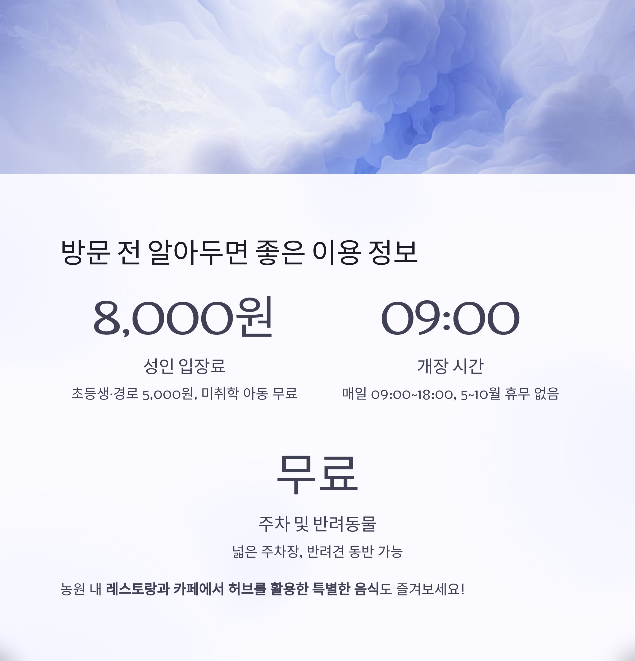 평창 허브나라 농원을 방문하기 전에 알아두면 좋을 몇 가지 이용 정보들을 알려드릴게요.