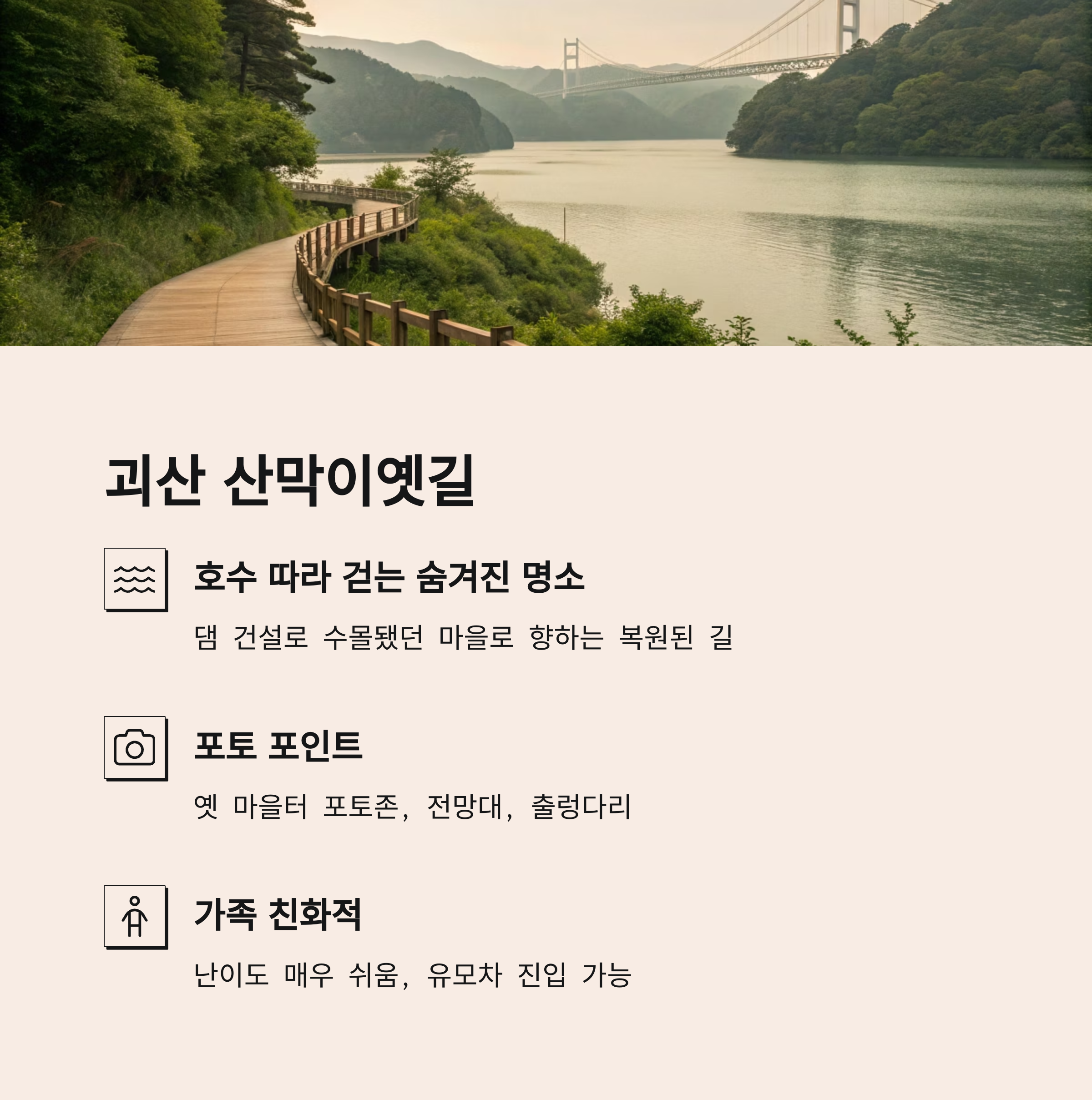 5위. 괴산 산막이옛길, 호수 따라 걷는 숨겨진 명소