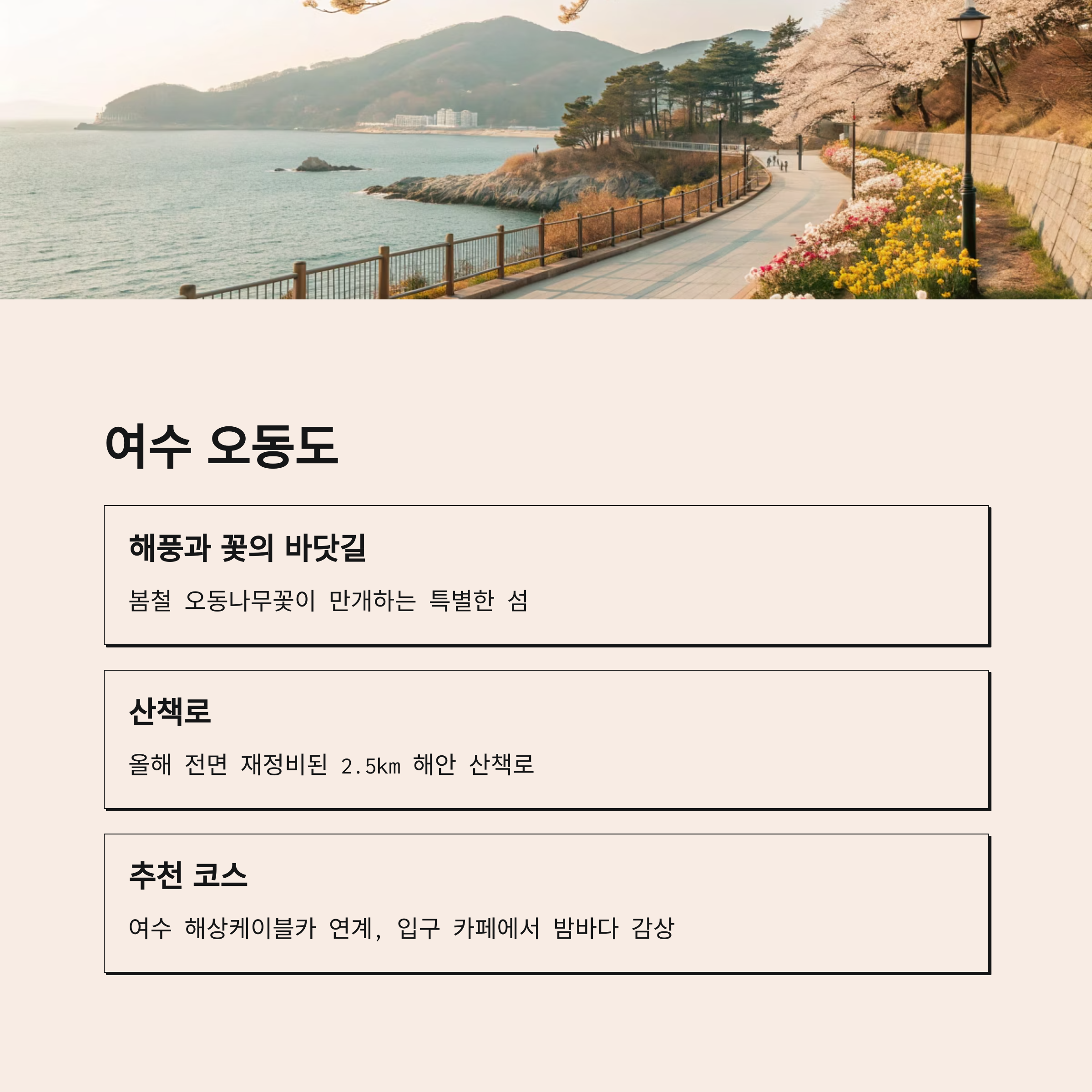 4위. 여수 오동도, 해풍과 꽃이 만나는 바닷길 산책