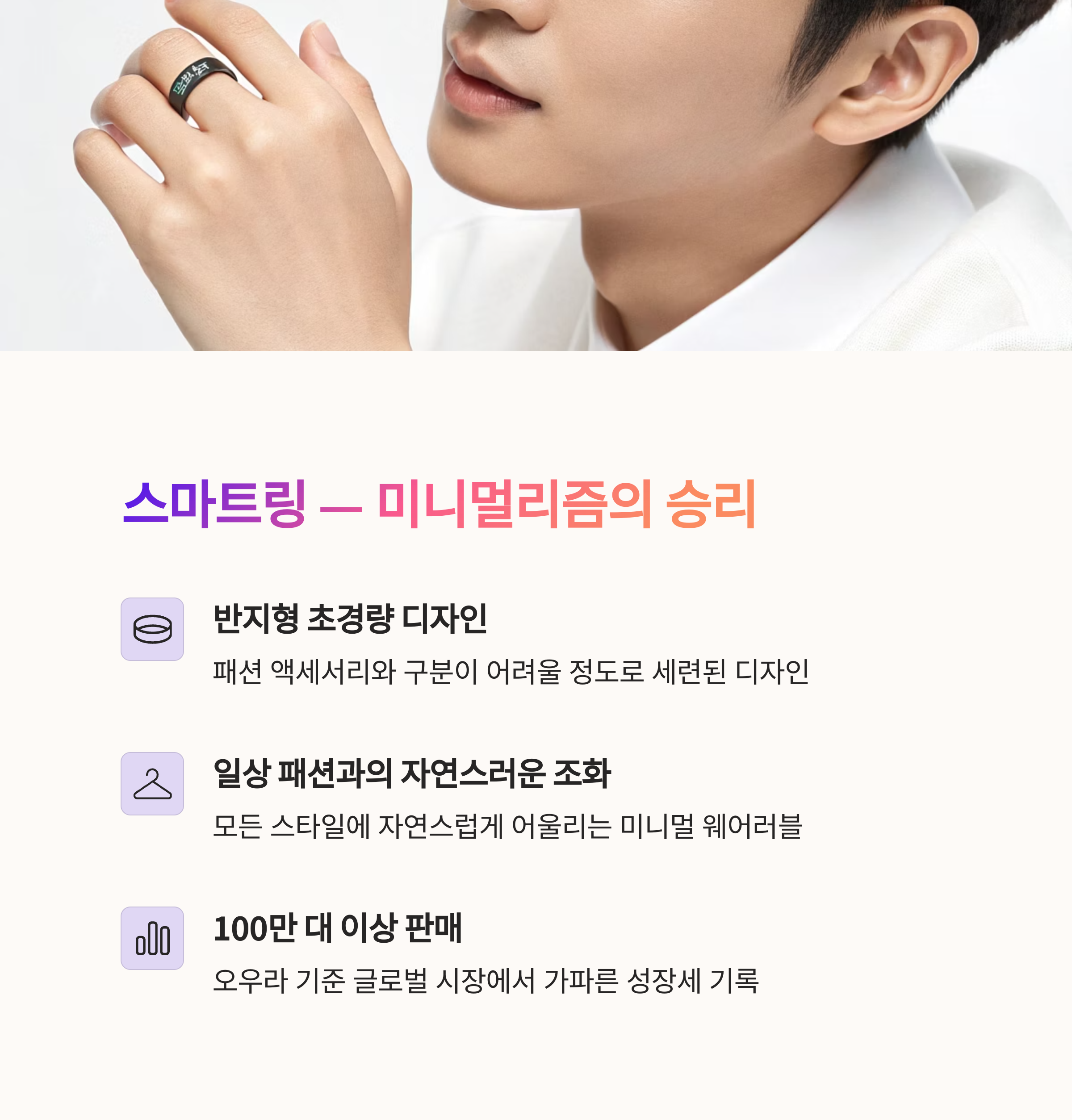 "가볍고, 오래가며, 정확하다"가 스마트링의 핵심입니다