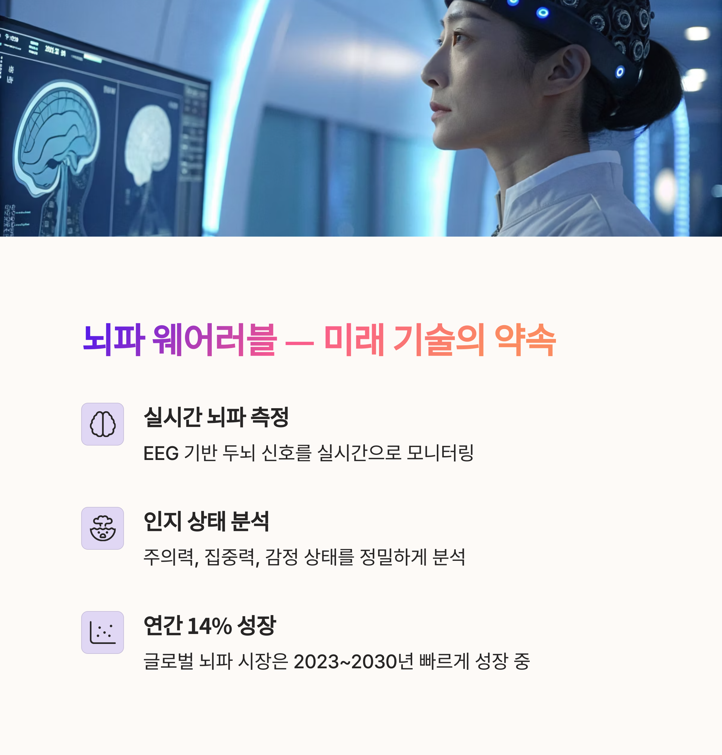 - 뇌파 기술 발전, 착용성 개선, AI 통합이 변수