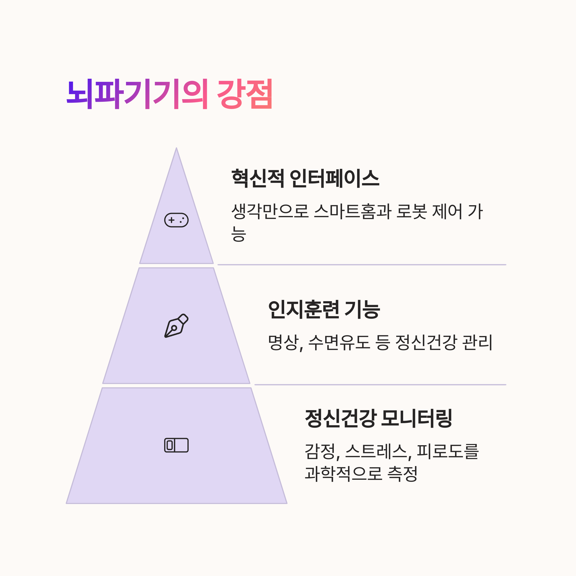 - 뇌파기기는 집중, 감정 관리 등 특수 상황용