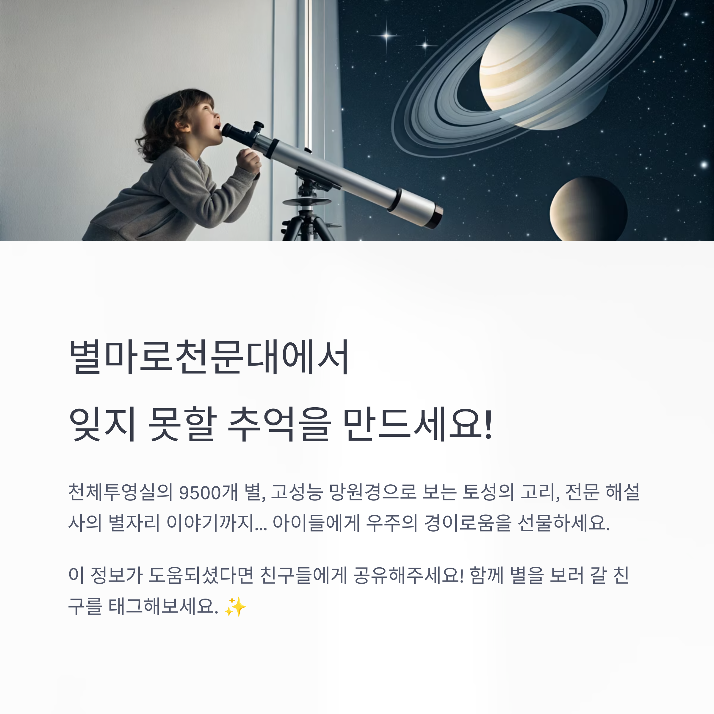 2025년 여름밤, 아이들과 함께 우주의 신비를 탐험할 수 있는 최고의 장소를 찾고 계신가요? 영월 별마로천문대는 빛 공해 없는 봉래산 정상에 위치해 도심에서는 절대 볼 수 없는 선명한 별들을 관측할 수 있는 특별한 공간입니다. 전문 해설사와 함께하는 천체 관측 프로그램부터 아이들을 위한 체험형 천문 교육까지, 온 가족이 함께 즐길 수 있는 완벽한 여름밤 힐링 코스를 제공합니다.