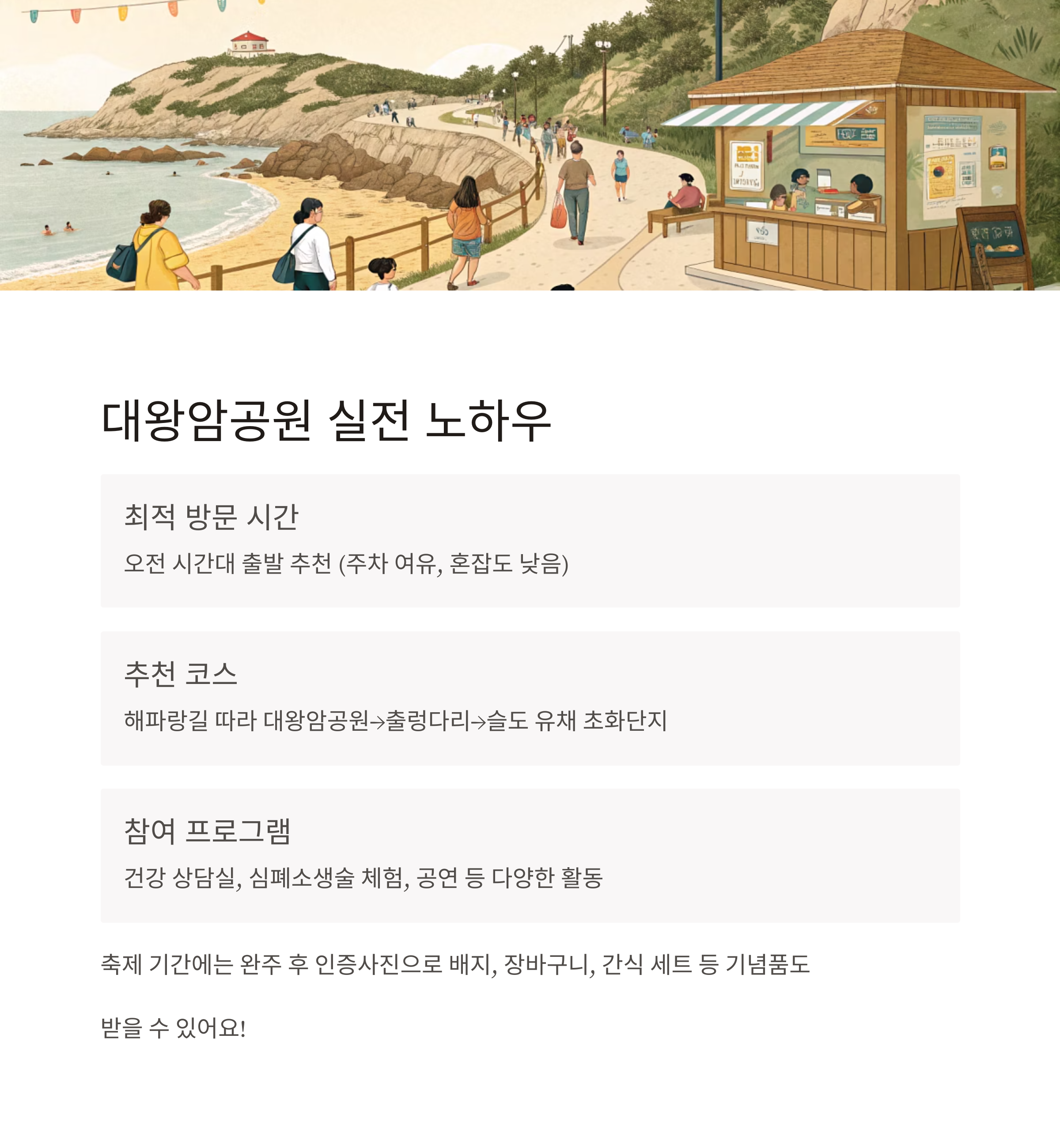 성공적인 대왕암공원 걷기 여행을 위한 저만의 체크리스트와 팁을 알려드릴게요.