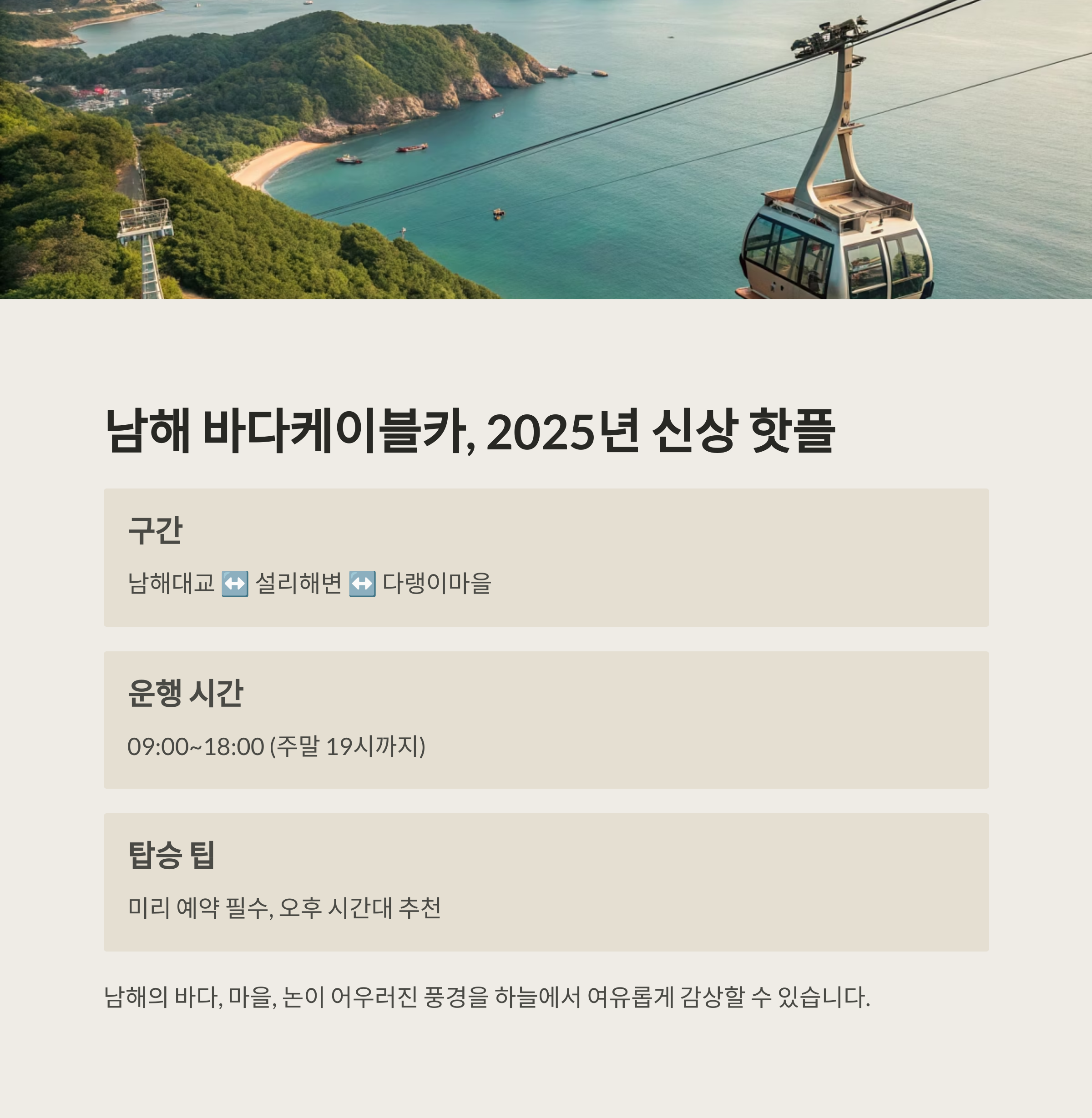 2025년 새롭게 개통된 남해 바다케이블카는