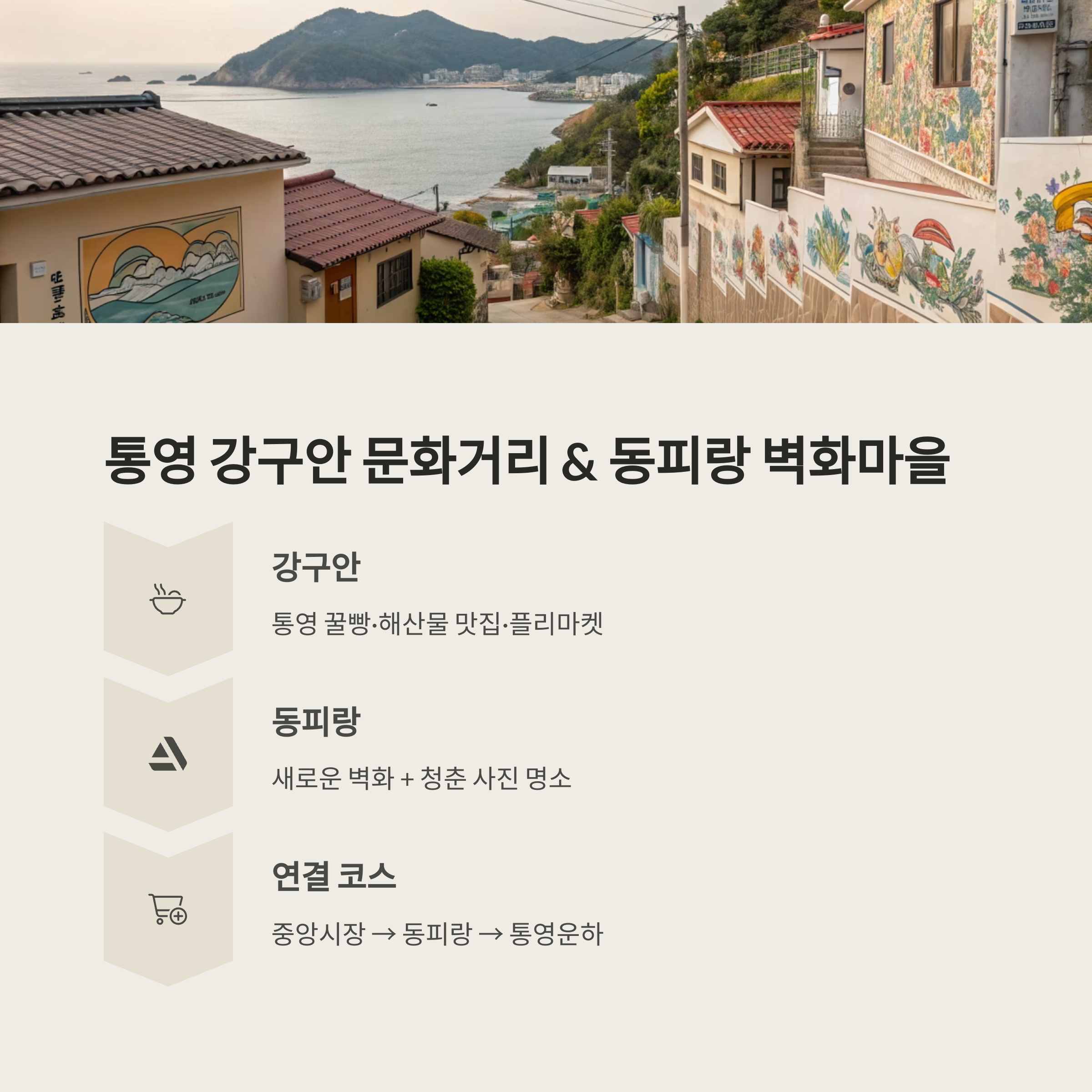 - 연결 코스: 중앙시장 → 동피랑 → 통영운하