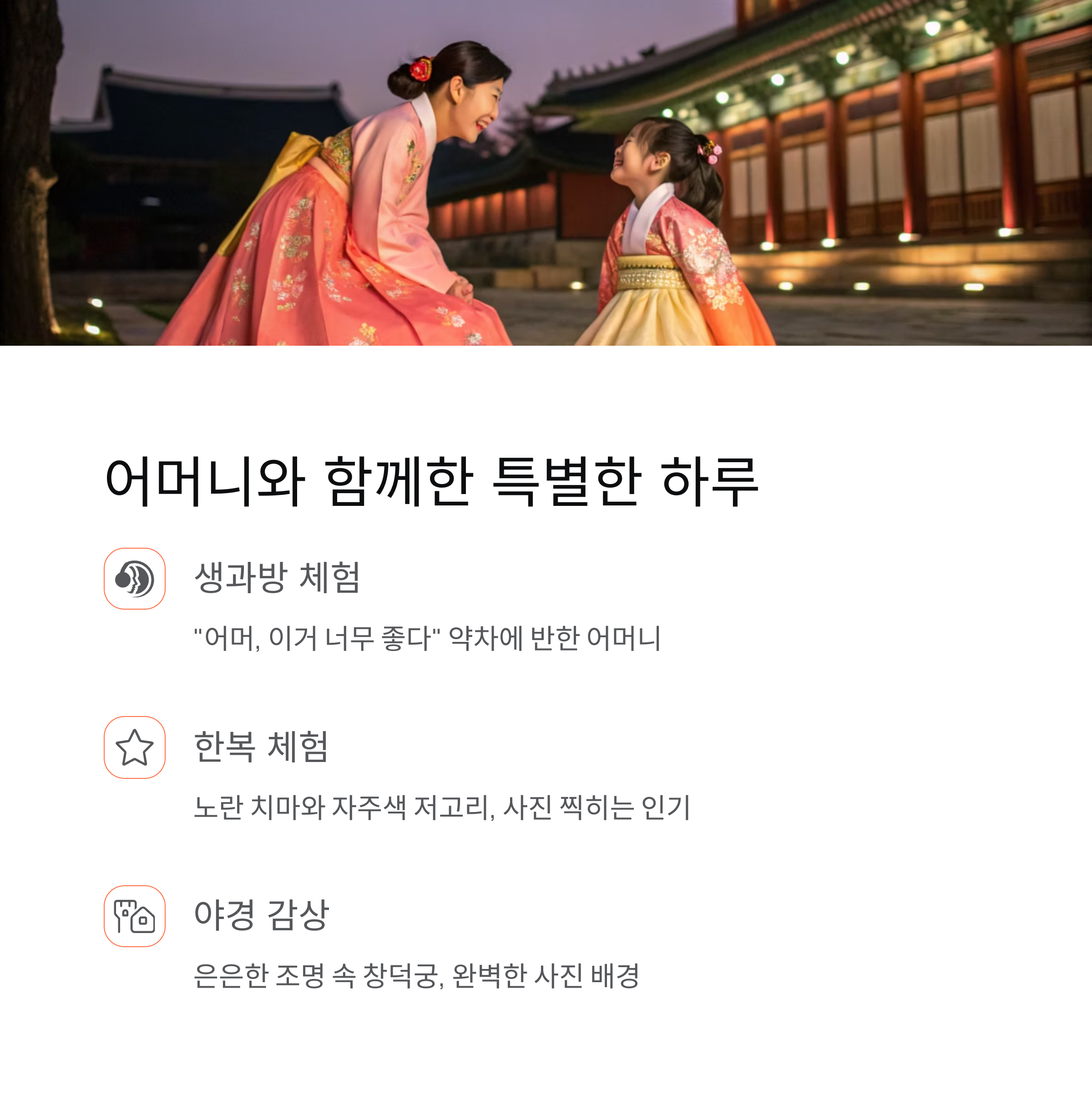 드시고는 "어머, 이거 너무 좋다" 하셨던 말씀이 아직도 생생해요. 창덕궁은