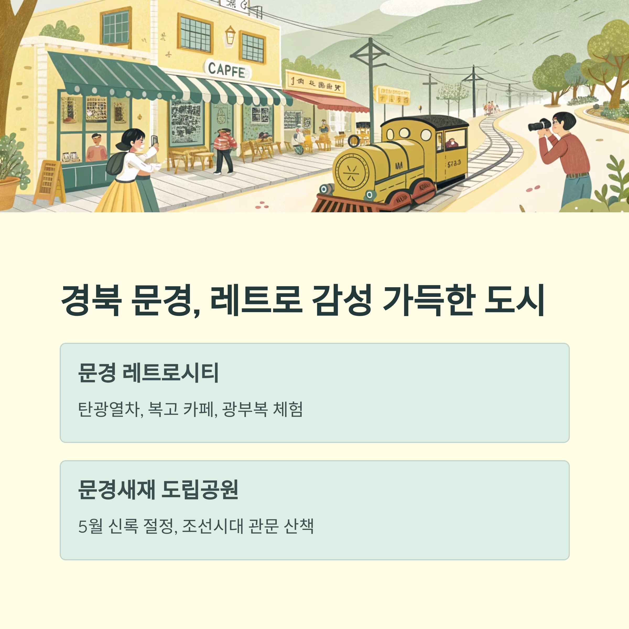 - 주요 구성: 탄광열차 체험, 복고 감성 카페, 빈티지 상점 거리