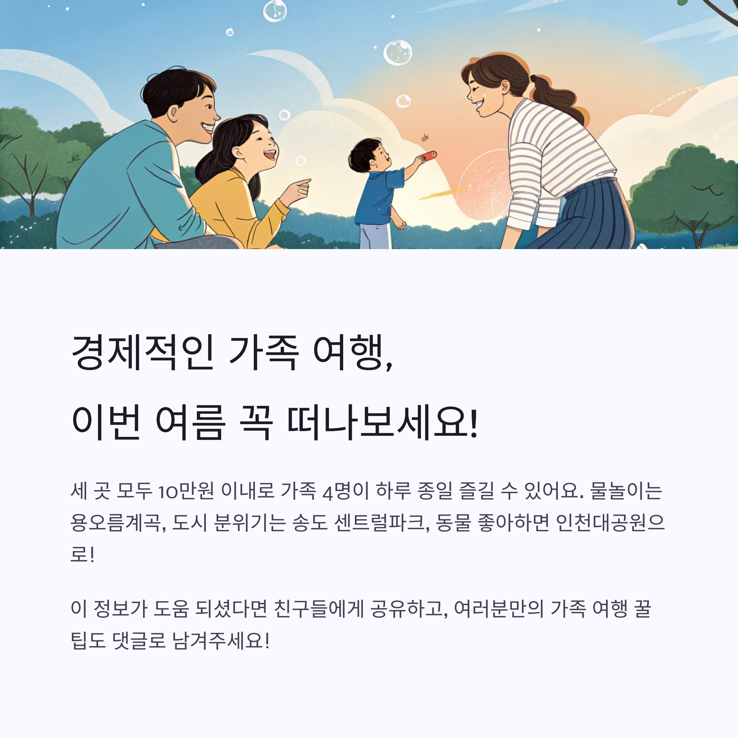 올해 여름휴가는 꼭 이런 알찬 곳들로 계획해보세요. 아이들도 신나게 놀고, 부모들도 경제적 부담 없이 여유를 즐길 수 있는 정말 완벽한 가족 여행지들이라고 자신 있게 추천드립니다.