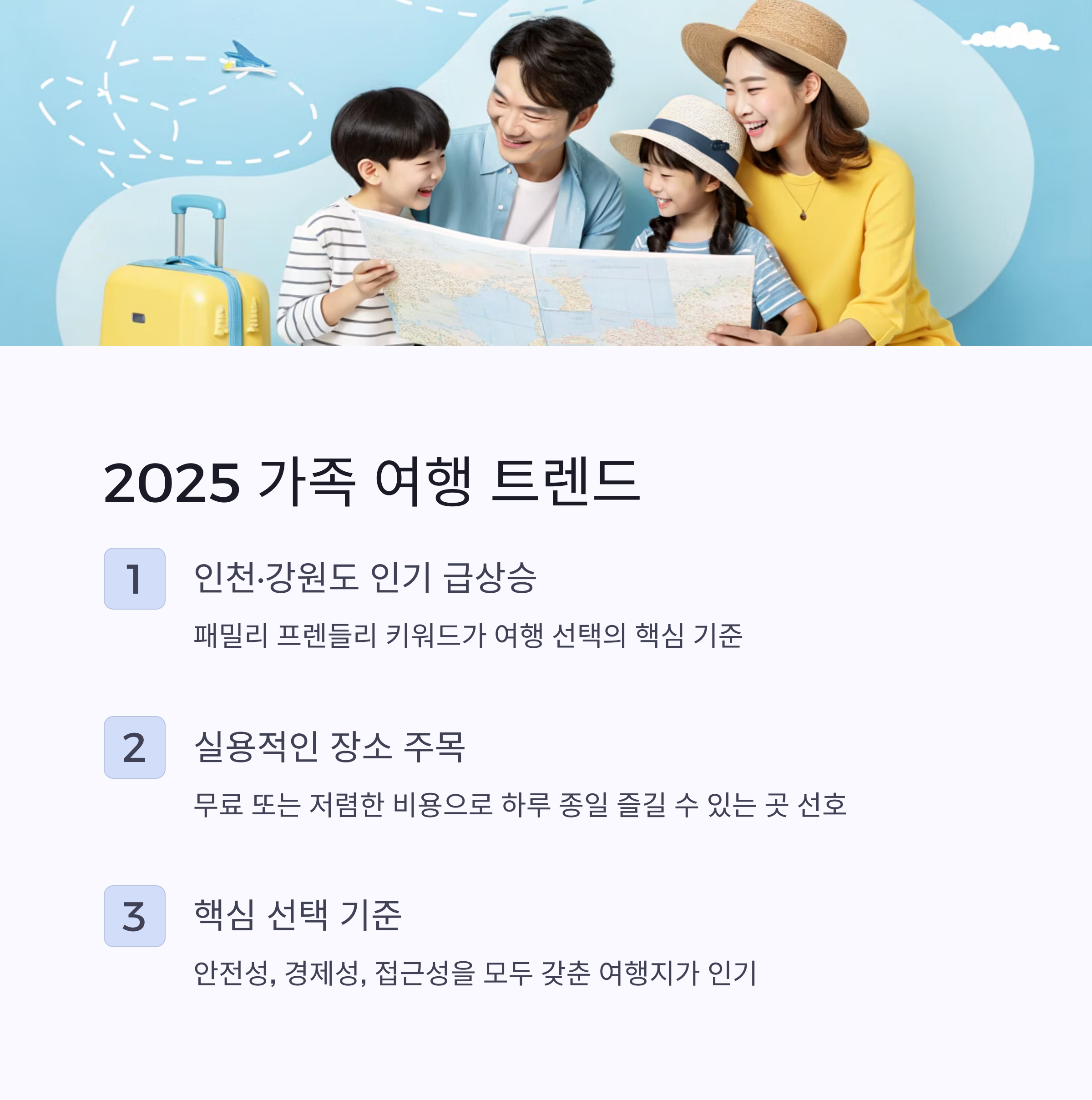 2025년 여름 패밀리 여행의 특징은 안전성, 경제성, 접근성을 모두 갖춘 곳들이 선호된다는 점입니다. 아무래도 아이들과 함께하는 여행이다 보니까 무엇보다 안전이 우선이고, 가계 경제를 고려한 합리적인 비용, 그리고 대중교통이나 자가용으로 쉽게 갈 수 있는 접근성까지 모든 조건을 만족하는 곳들이 주목받고 있어요.