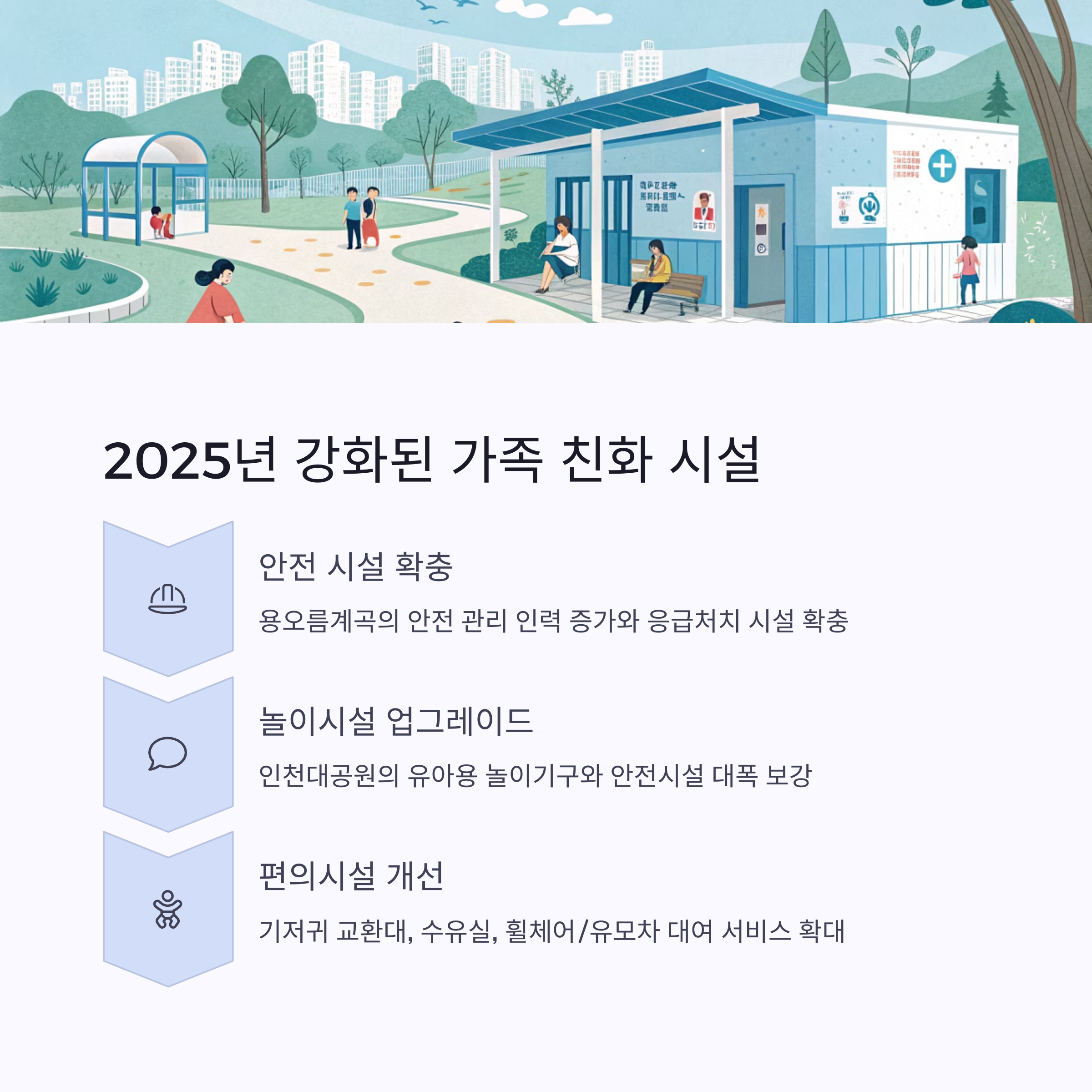 2025년 들어서 각 여행지들이 가족 친화 프로그램을 크게 강화했다는 점이 정말 반갑습니다. 용오름계곡은 안전 관리 인력을 늘리고 응급처치 시설을 확충했고, 송도 센트럴파크는 아이들을 위한 특별 체험 프로그램을 추가로 운영하고 있어요.