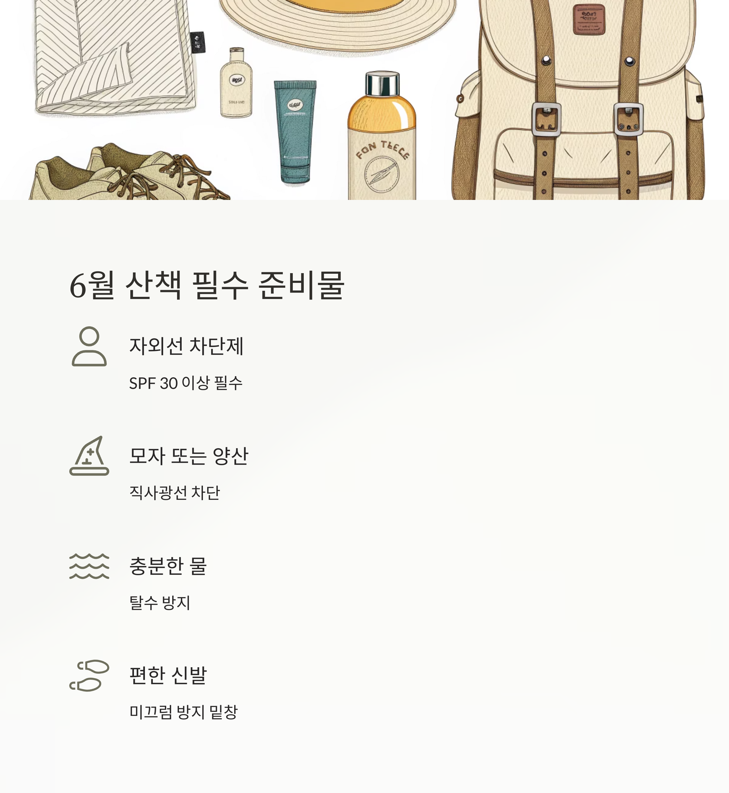 6월 산책을 위한 필수 준비물과 안전한 산책을 위한 팁들을 정리해드릴게요.