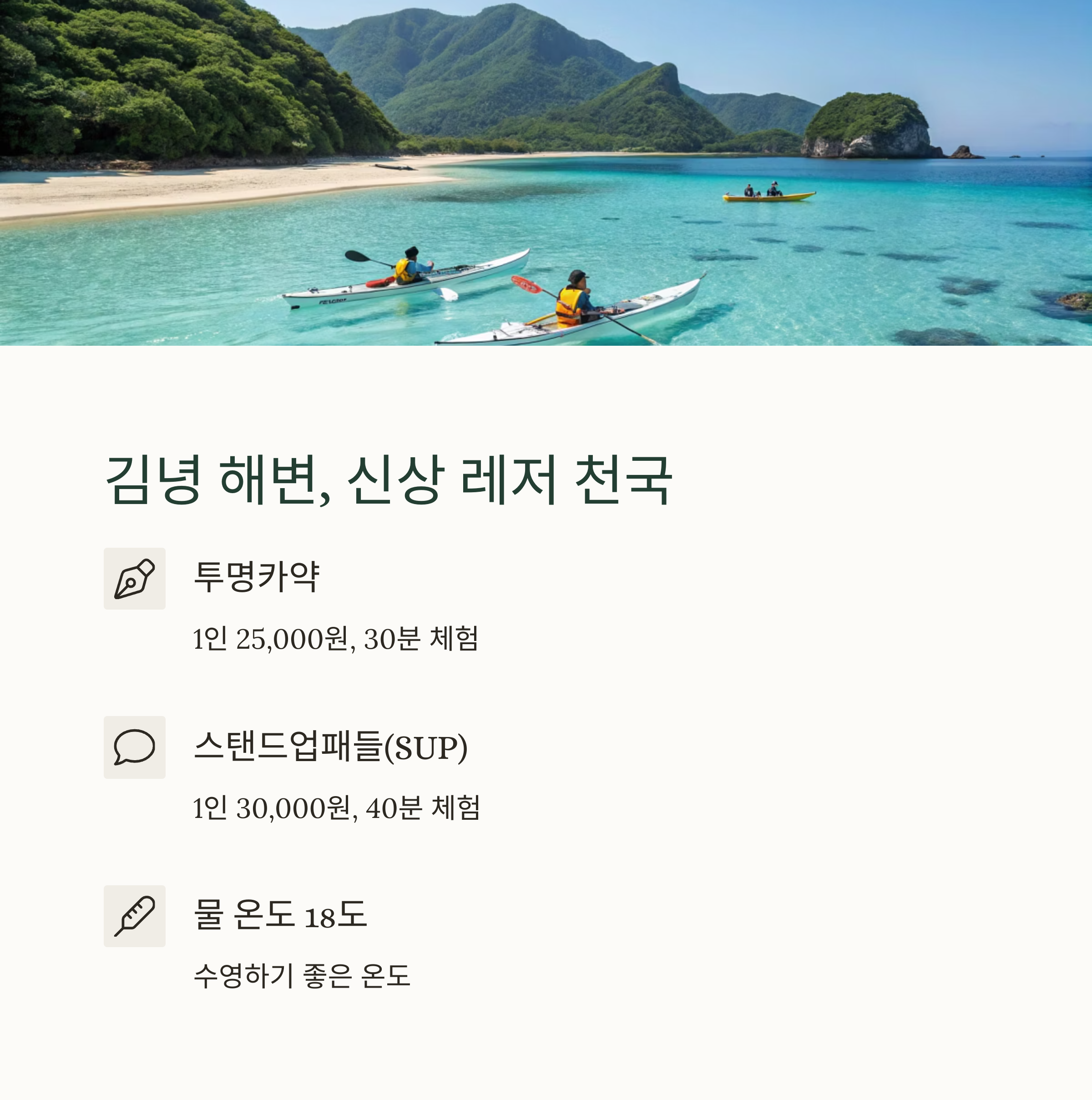 1. 김녕 해변, 투명카약부터 SUP까지 신상 레저 천국