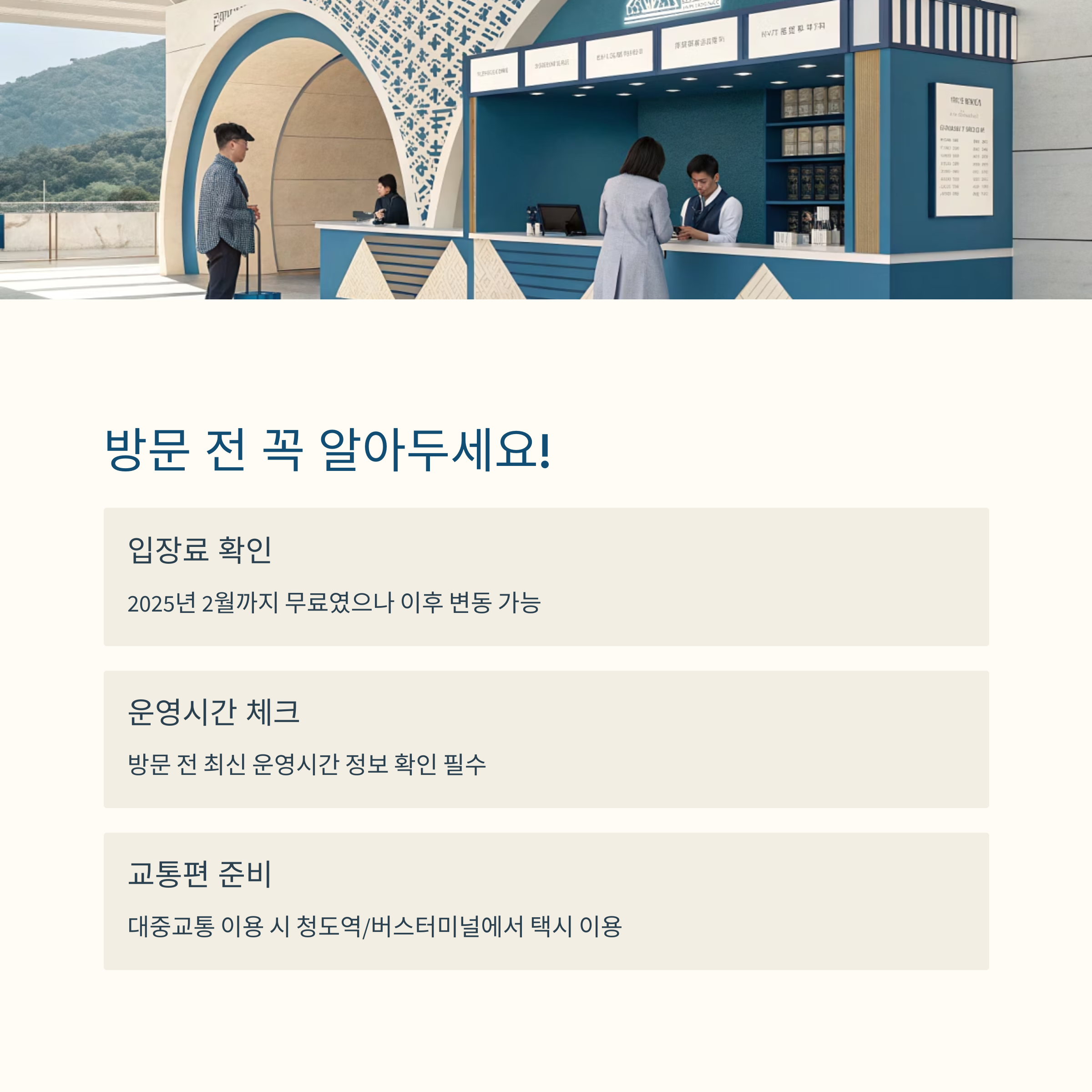 청도 와인터널을 방문하시기 전에 몇 가지 알아두면 좋을 팁이 있어요. 제가 경험해 보니, 가장 중요한 건 입장료와 운영시간을 미리 확인하는 것이더라고요. 2025년 2월까지는 입장료가 무료였지만, 이후에는 변동될 수 있다고 하니 방문 전에 꼭 최신 정보를 확인하는 게 좋습니다.